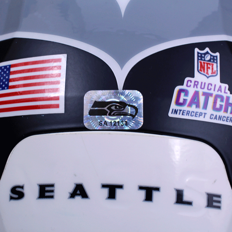 Each Seahawks Auction item is authenticated by a member of the Seattle Seahawks organization, then archived and stickered with a one of a kind hologram.  In order to ensure authenticity of each item, holograms are designed to show traces of tampering if removed. Do not remove the hologram sticker from your memorabilia.