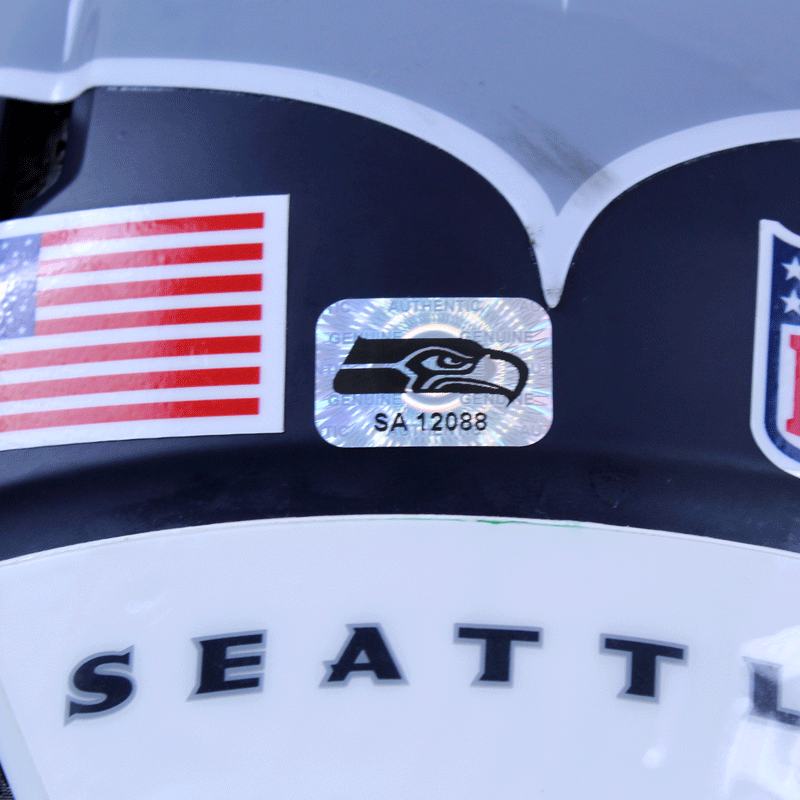 Each Seahawks Auction item is authenticated by a member of the Seattle Seahawks organization, then archived and stickered with a one of a kind hologram.  In order to ensure authenticity of each item, holograms are designed to show traces of tampering if removed. Do not remove the hologram sticker from your memorabilia.