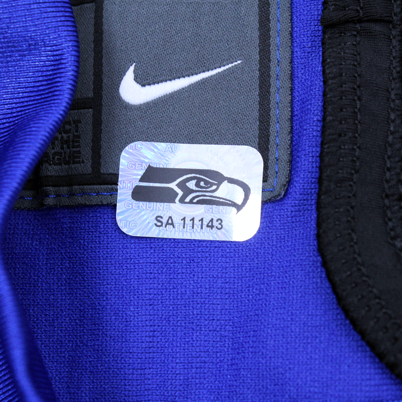 Each Seahawks Auction item is authenticated by a member of the Seattle Seahawks organization, then archived and stickered with a one of a kind hologram.  In order to ensure authenticity of each item, holograms are designed to show traces of tampering if removed. Do not remove the hologram sticker from your memorabilia.