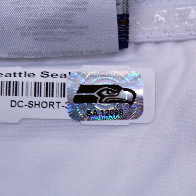 Each Seahawks Auction item is authenticated by a member of the Seattle Seahawks organization, then archived and stickered with a one of a kind hologram.  In order to ensure authenticity of each item, holograms are designed to show traces of tampering if removed. Do not remove the hologram sticker from your memorabilia.