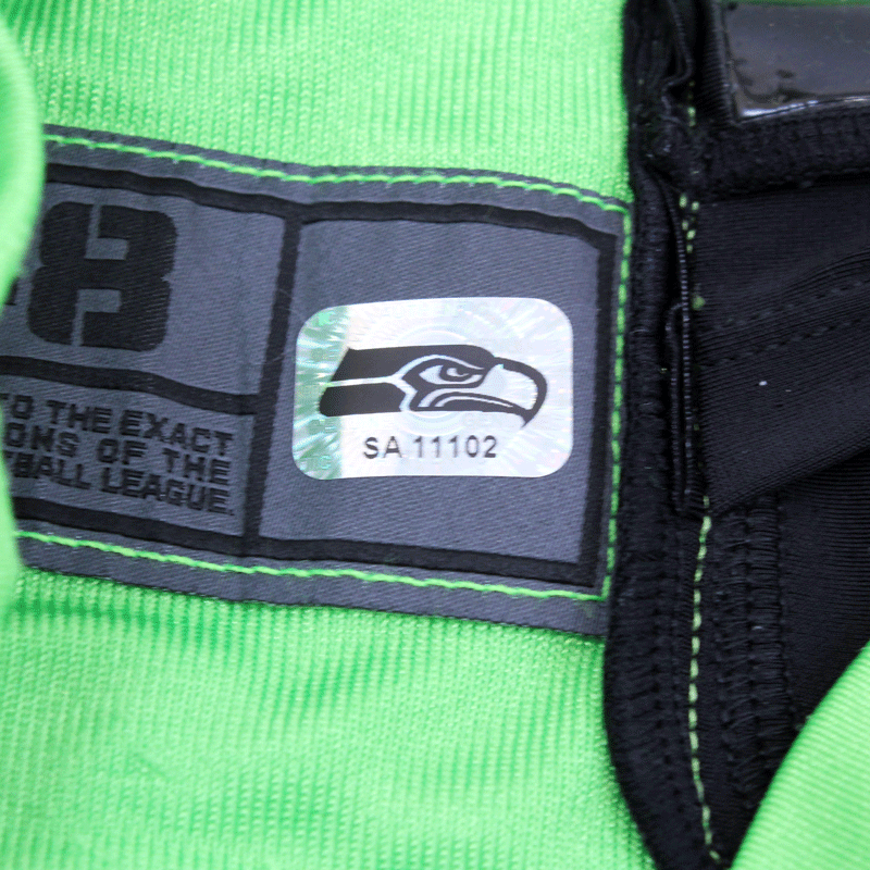 Each Seahawks Auction item is authenticated by a member of the Seattle Seahawks organization, then archived and stickered with a one of a kind hologram.  In order to ensure authenticity of each item, holograms are designed to show traces of tampering if removed. Do not remove the hologram sticker from your memorabilia.