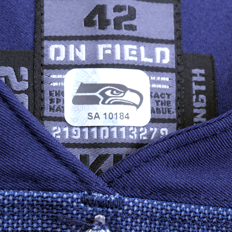 Each Seahawks Auction item is authenticated by a member of the Seattle Seahawks organization, then archived and stickered with a one of a kind hologram.  In order to ensure authenticity of each item, holograms are designed to show traces of tampering if removed. Do not remove the hologram sticker from your memorabilia.