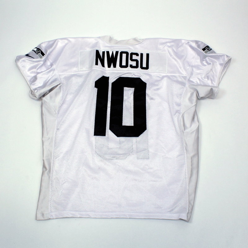Team-Issued Uchenna Nwosu #10 White Practice Jersey - SA#11241