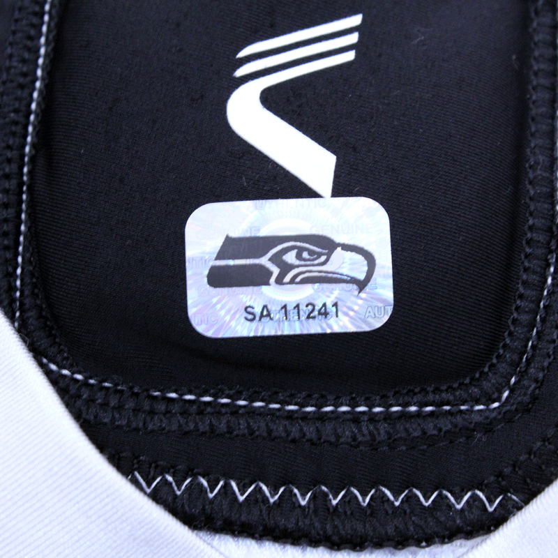 Each Seahawks Auction item is authenticated by a member of the Seattle Seahawks organization, then archived and stickered with a one of a kind hologram.  In order to ensure authenticity of each item, holograms are designed to show traces of tampering if removed. Do not remove the hologram sticker from your memorabilia.