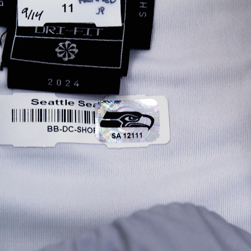 Each Seahawks Auction item is authenticated by a member of the Seattle Seahawks organization, then archived and stickered with a one of a kind hologram.  In order to ensure authenticity of each item, holograms are designed to show traces of tampering if removed. Do not remove the hologram sticker from your memorabilia.
